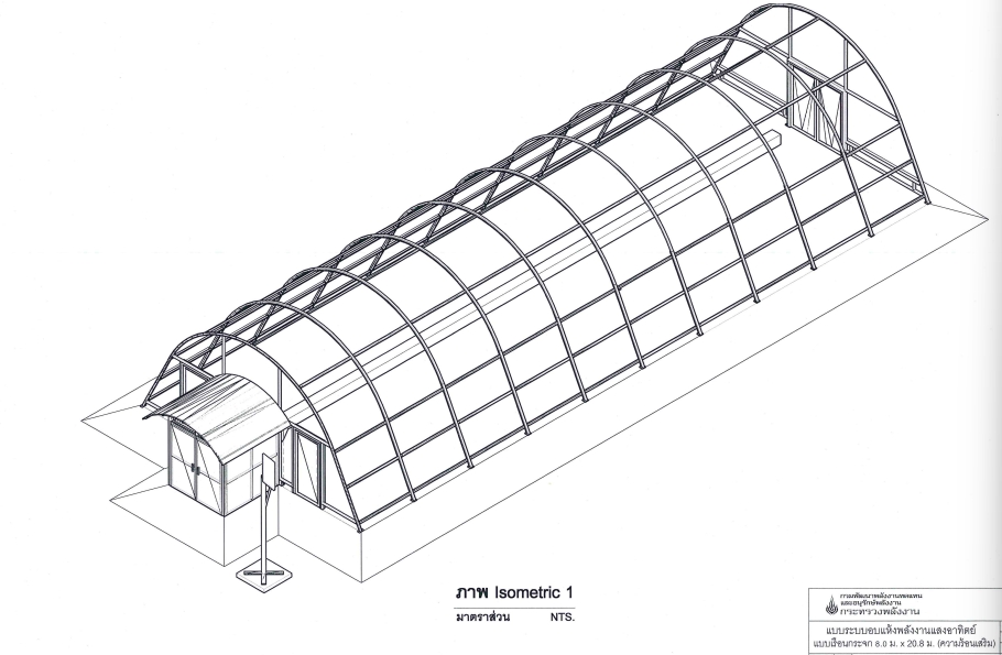 ระบบอบแห้งพลังงานแสงอาทิตย์แบบเรือนกระจกขนาด 8.0 ม. X 20.8 ม. (ความร้อนเสริม) (อบแห้ง พพ.3RH)